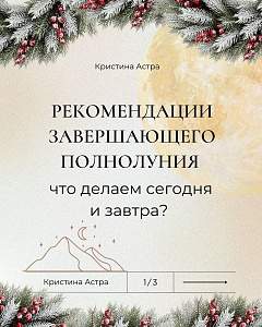 «Энергии завершающего полнолуния заставят нас идти вперёд, преодолевая сомнения и страхи. Если вы были в застое, то декабрьское полнолуние заставит вас действовать, подтолкнёт к переменам. А какие это будут перемены, зависит от вас. Закладывайте позитивные намерения на развитие отношений, деньги, финансовые проекты, образование, духовное развитие. Важно, что заложите в декабре, будет расти и развиваться до весны 2026 года и станет вашей опорой в дальнейшем. В дни Полнолуния концентрируйте энергию, направляйте ее в цель, используйте эти энергии себе во благо».